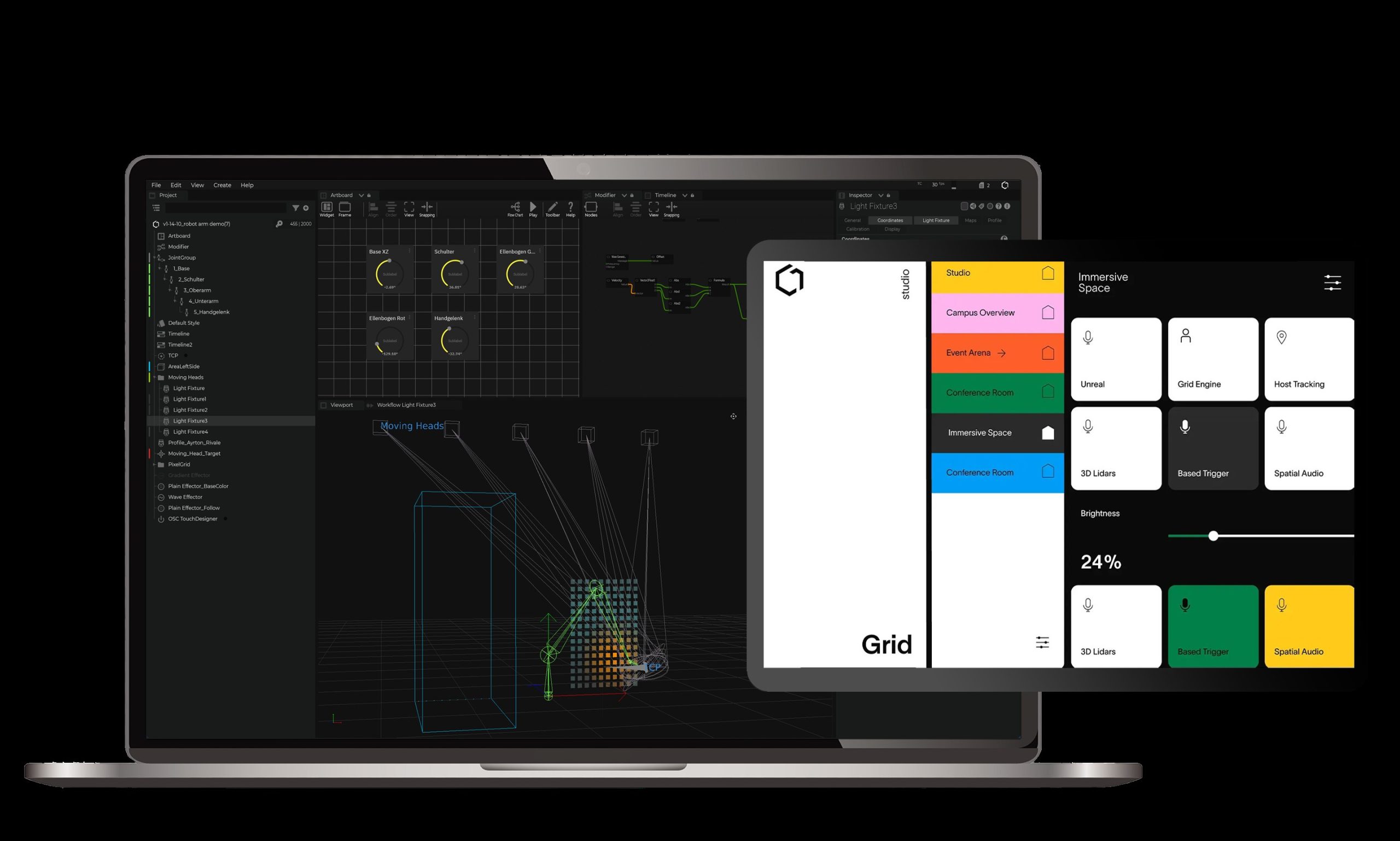 Wir vereinen Konnektivität, Low-Code-Entwicklung, Echtzeit-3D-Daten und individuelles UI-Design in einem durchgängigen Workflow. Anhand dieses Ansatzes zeigen wir, wie Teams intelligentere, anpassungsfähigere AV- und Medienumgebungen schaffen können – und warum räumliche Intelligenz zur Grundlage der nächsten Generation von Experience-Technologien wird.