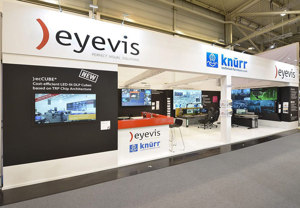 Eyevis zeigte zahlreiche technische Neuheiten und in Zusammenarbeit mit Knürr und BMA Ergonomics ein Gesamtkonzept für Kontrollräume auf der Security 2016.
