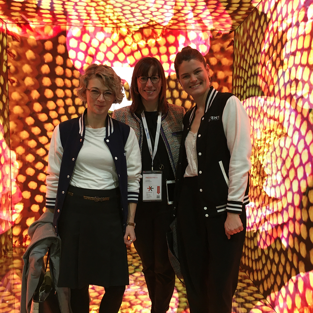 Das Team von EVENT PARTNER auf der EuroShop 2020 (v.l.n.r.): Martina Courth, Lea Wegerhoff und Anna Habenicht (Bild: Valentina Radatiuk)