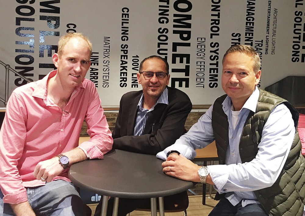 Joppie Maritz, Stage Audio Works Namibia, Will Deysel, CEO Mitech Distribution, Markus Jahnel, COO Adam Hall Group (v.l.n.r.) (Bild: Adam Hall)
