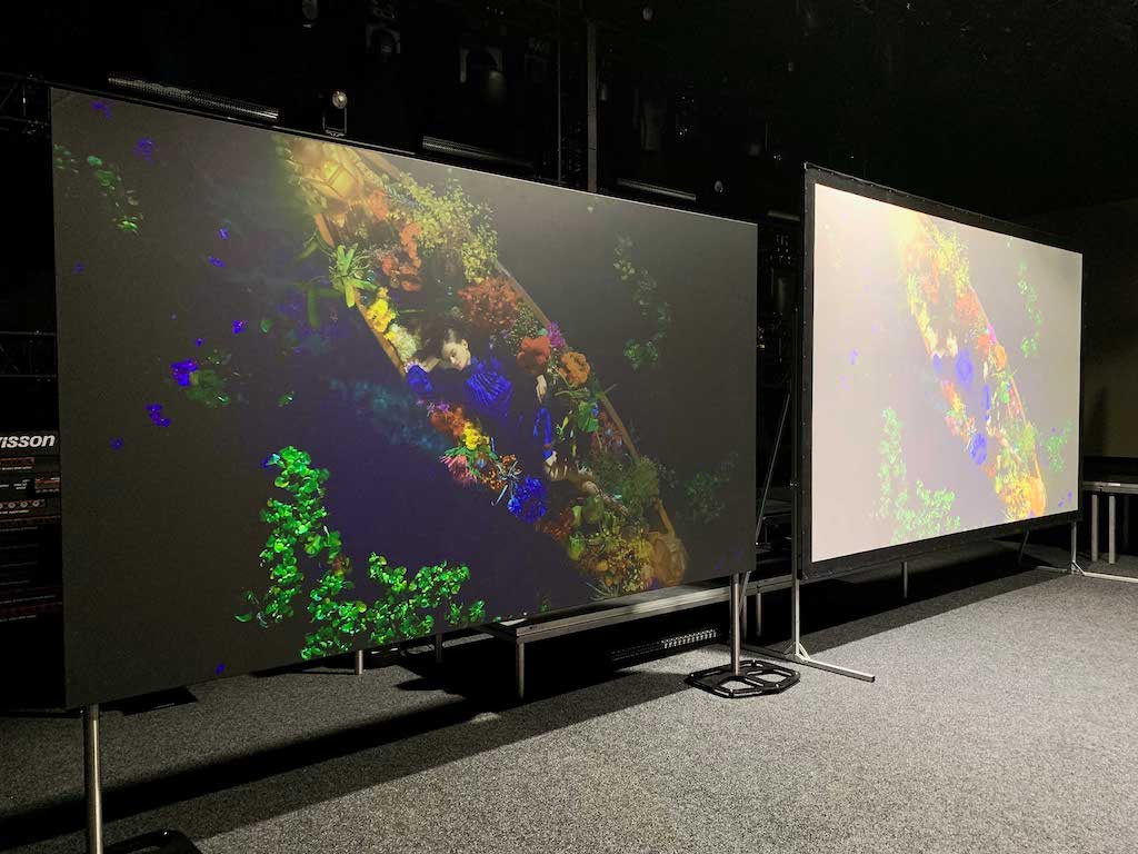 Bei Verwendung von konventionellen Leinwandoberflächen könne das projizierte Bild aufgrund von Umgebungslicht möglicherweise ausgewaschen erscheinen und wichtige Bilddetails könnten verloren gehen. Das neue Flex Black Pro Projektionswandmaterial ermögliche die Darstellung qualitativ hochwertiger Bilder, selbst in hellen Umgebungen. Die Bildqualität sei vergleichbar mit hochauflösenden LED-Wänden und anderen Licht emittierenden Displaytechnologien.