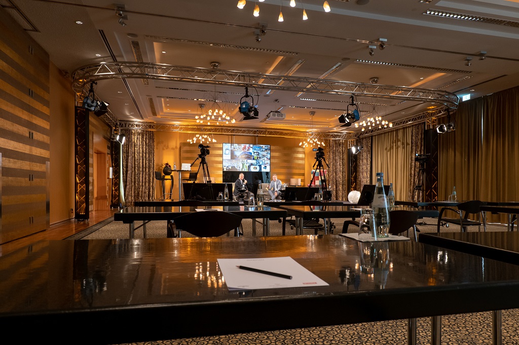 Gemeinsam mit dem Binger Unternehmen „Media4Rent“ hat das Atrium Hotel Mainz ein eigenes Streaming-Studio realisiert. Neben der gesamten Infrastruktur des inhabergeführten 4-Sterne Superior Hotels stehen den Gästen im Studio Profis aus dem Bereich Veranstaltungstechnik zur Verfügung. Nach lösungsorientierter Beratung sorgen Kamerapersonal, Bild- Ton- und Lichttechniker für die reibungslose Umsetzung.