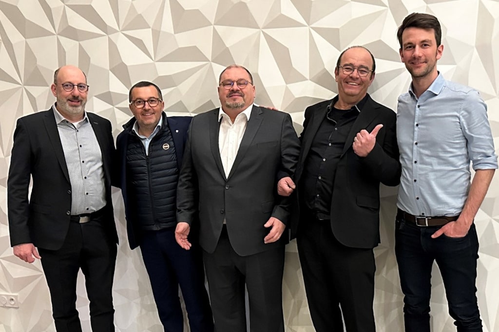 V. l. n. r.: Jochen Schwarz (Vorstandsvorsitzender Fohhn), Arnaud Leschemelle (Président CSI), Uli Haug (Vorstand Marketing/Sales Fohhn), Daniel Borreau (CSI), Samuel Hartmann (Export/Sales Fohhn) (Bild: Fohhn)