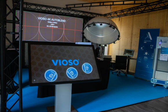 Anhand einer Kuppelprojektion mit 12 Mini-Projektoren demonstrierte Vioso die kamerabasierte Autokalibrierungssoftware Vioso Integrate, mit welcher komplexe Projektionsflächen in kürzester Zeit eingemessen werden können, um so die Einrichtung der Projektoren um zu erleichtern.