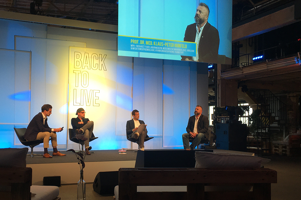 Aber auch inhaltlich wollte BACK TO LIVE Zeichen setzen. In unterschiedlichen Diskussionspanels unter der Moderation von Aljoscha Höhn wurde das Thema „Sicherheit auf Veranstaltungen“ in verschiedenen Dimensionen beleuchtet. Besonders interessant waren dabei die Ausführungen von Prof. Dr. med Klaus-Peter Hunfeld, der auch bereits die Erstellung des RIFEL-Stufenplans begleitete. Hunfeld erklärte, dass mit der erwartbaren Vorsicht und Verantwortung eines jeden einzelnen, klaren Regeln und bereits verfügbaren Lösungen (Tests, Tracking, Besucherführung) von professionellen Agenturen/Veranstaltern, virologisch sehr sichere Veranstaltungen ausgerichtet werden können. Zusätzlich verwies Hunfeld auf die große Bedeutung von realen Begegnungen für den Menschen – auch aus medizinischer Sicht.