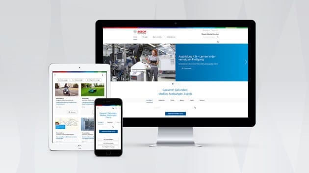 Die Bosch-Pressestelle soll mit dem zum August 2016 vollständig neu entwickelten Bosch Media Service über eine der modernsten Presse-Webseiten verfügen. Eine durchdachte Nutzerführung und innovative Webtechnik sollen Besuchern die Recherche nach und das Auffinden von Inhalten erleichtern.