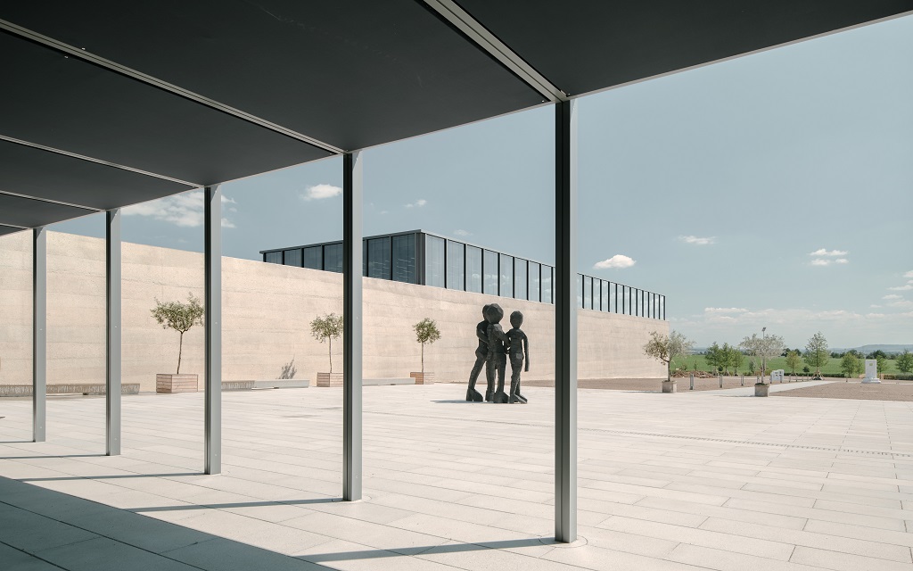 Die reduzierte Bauweise, der Dialog mit Landschaft und Umgebung, klare Außenfassaden aus Beton und Muschelkalk, rhythmisch unterbrochen vom Glas, sind die Merkmale des von David Chipperfield Architects konzipierten und realisierten Anbaus. Rund 39 Millionen Euro wurden investiert.