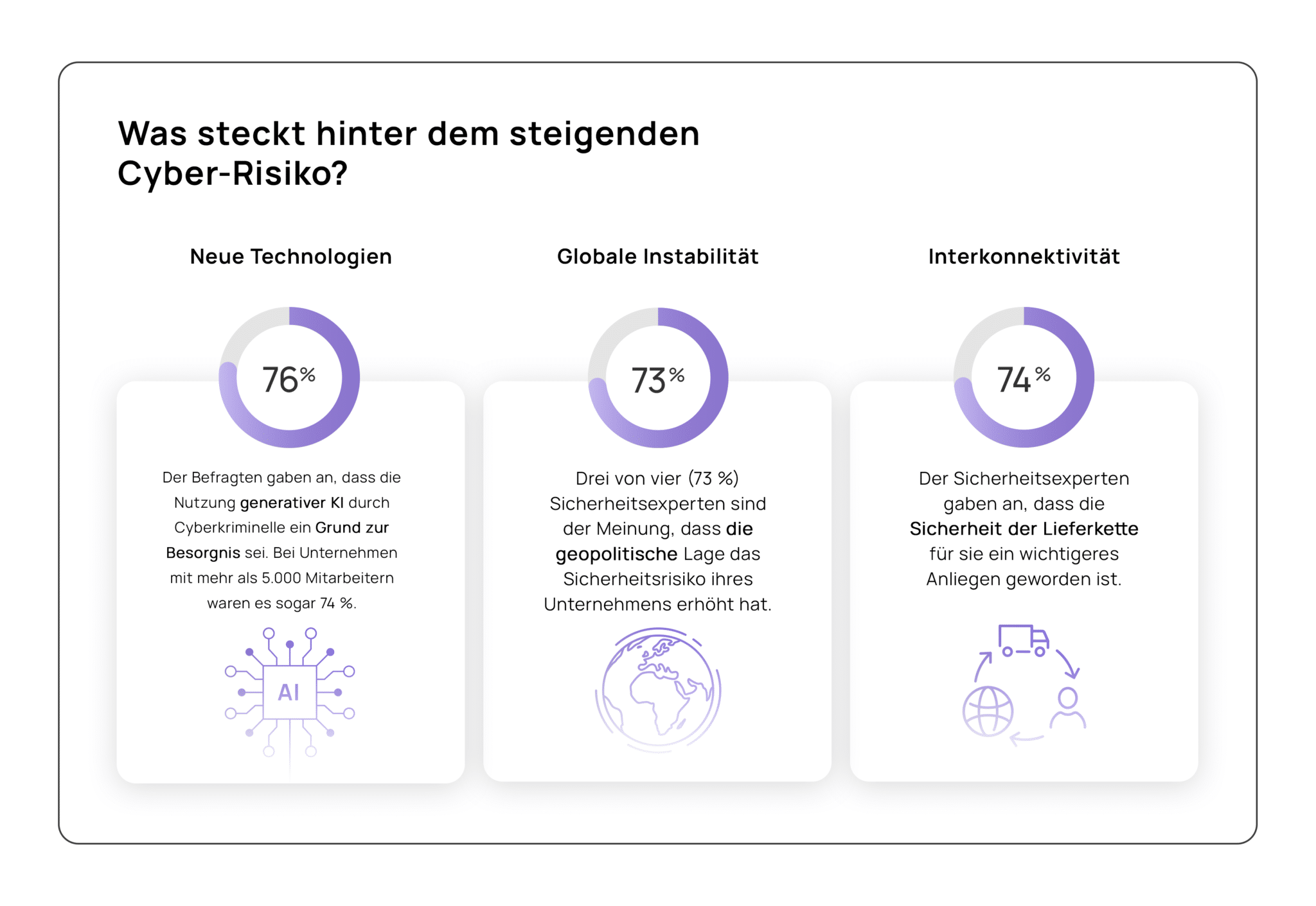 Die drei wichtigsten Ursachen für das steigende Cyber-Risiko sind neue Technologien, die globale Politik und die Verflechtung der Lieferketten. (Bild: SoSafe)