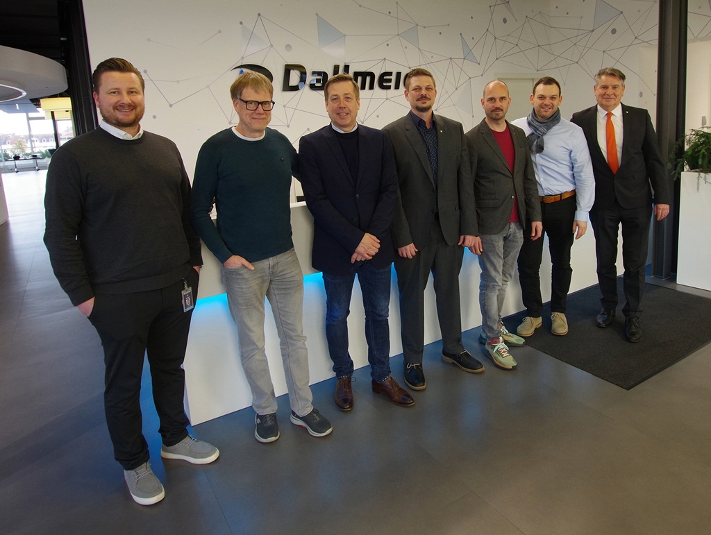 Dallmeier und Hexagon verkünden ihre Technologiepartnerschaft (von links nach rechts): Kai Gronauer (Alliance Manager bei Dallmeier), Carsten Eckstein (Head of Product Management VMS bei Hexagon), Andreas Beerbaum (Vice President International Sales – Physical Security bei Hexagon), Thomas Dallmeier (CEO von Dallmeier), Philipp Kraft (Product Manager, Camera Integrations bei Hexagon), Stefan Palenkov (Director of Sales Engineering, Physical Security – EMEA bei Hexagon) und Tim Hancock (Business Development Manager bei Dallmeier) (Bild: Dallmeier electronic )