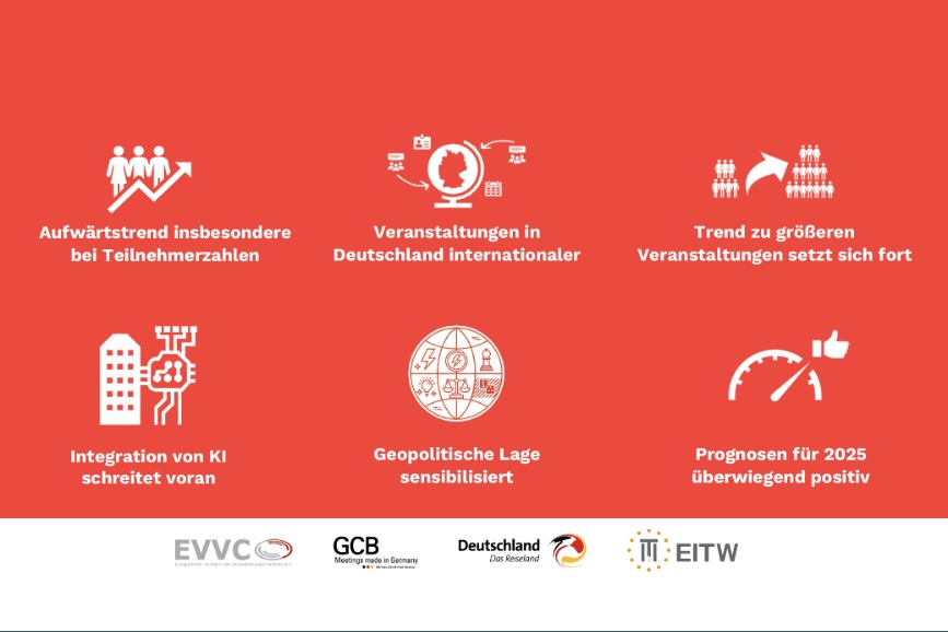 Die Key Findings des Meeting- und Eventbarometer 2024/2025 stellen vor allem heraus: Teilnehmerzahlen steigen weiterhin an, Veranstaltungen werden größer und internationaler (Bild: EVVC, GCB, DZT, EITW)