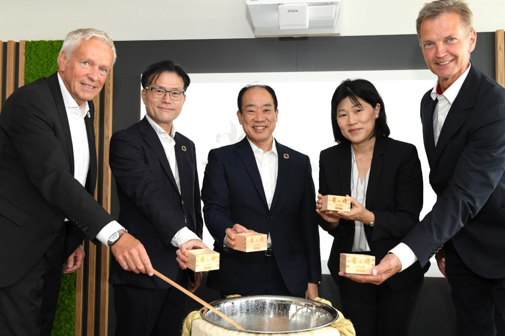 Zur Eröffnung des Standortes konnten die Beteiligten einer traditionell japanischen Zeremonie namens Kagami biraki* beiwohnen. Die Zeremonie begleiteten Henning Ohlsson, Geschäftsführer Epson Deutschland GmbH, Yoshiro Nagafusa, Präsident von Epson Europe B.V. Yasunori Ogawa, CEO und Präsident Seiko Epson Corporation und Josef Hinkel, Bürgermeister der Stadt Düsseldorf. Zu den internationalen und nationalen Gästen gehörten auch die stellvertretende Generalkonsulin Maya Mitani, der Präsident der japanischen Industrie und Handelskammer zu Düsseldorf Akiro Sato, die Wirtschaftsförderung Düsseldorf, Vertreter:innen der Werkstatt für angepasste Arbeit sowie Kolleginnen und Kollegen. Der weltweite Epson-Präsident Yasunori Ogawa nahm seinen ersten Deutschlandbesuch in seiner Funktion als Präsident auch zum Anlass, die Mitarbeitenden herzlich sowie persönlich am neuen Standort zu begrüßen.
