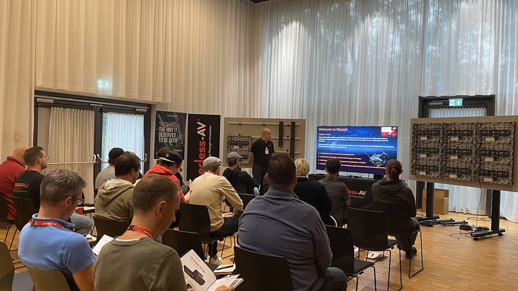100 % der Teilnehmer gaben an, dass sie die Roadshow weiterempfehlen würden, und die Schulung wurde insgesamt mit 5 Sternen bewertet, da sie eine einzigartige Kombination aus technischen Herstellerpräsentationen und praktischer Schritt-für-Schritt-Installation bot. Ein Beispiel-Statement eines Teilnehmers: „Ich hatte das Vergnügen, an der Roadshow von Peerless-AV in München teilzunehmen, bei der neue Halterungssysteme für LED-Wände vorgestellt wurden. Die Schulung war äußerst hilfreich, insbesondere im Hinblick auf die Sicherheit und die einfache Montage der Systeme. Das spart viel Zeit und minimiert Fehler bei der Installation,” so Dorin C. Kratzer, Projektleiter Medientechnik, sld mediatec GmbH.