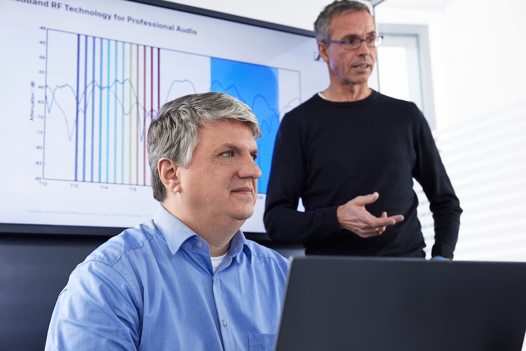Jan Watermann: „Die drahtlose Audiotechnologie basiert heute auf Schmalband-Lösungen, bei denen je ein Sender Signale an je einen Empfänger sendet. Dabei kann der Sender leider nicht feststellen, ob ‚sein‘ Empfänger überhaupt eingeschaltet ist oder ob er sich in Reichweite befindet. Im übertragenen Sinne könnte man sagen, dass jedes konfigurierte Mikrofon als Einzelkämpfer unterwegs ist.