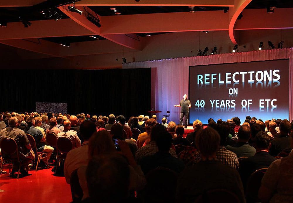 Am Mittwoch, den 13. Juli, betrat ETC CEO Fred Foster die Bühne – mit einem Vortrag zum Thema „Überlegungen zu 40 Jahren ETC“ („Reflections on 40 Years of ETC“). Seine Rede begannen er chronologisch – mit dem ETC-Gründungsjahr 1975 und der ersten ETC Lichtkonsole. Foster rekapitulierte in seiner temperamentvollen Rede die 40-jährige Geschichte von ETC, er erwähnte dabei spektakuläre Installationen und Produkt-Meilensteine des Unternehmens – und hob die Bedeutung der Gemeinschaft heraus: der immer größer werdenden Familie an Händlern, Vertretern, Distributoren und Mitarbeiten. Sie seien für den wachsenden Erfolg von ETC „elementar entscheidend“.