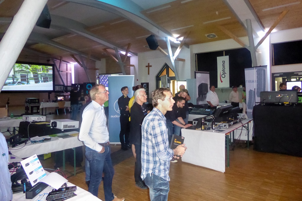 Mit verschiedenen Highlights wurde den Gästen eine spannende und attraktive Messe geboten. Zu diesen gehörten unter anderem eine Live-Demonstration der neuesten Lautsprechersysteme von Seeburg acoustic line und HK Audio. Außerdem wurden spektakuläre Großprojektoren mit der neusten 4K- Technologie von Digital Projection sowie die aktuellste programmierbare Licht- und Tontechnik von JB-Lighting vorgeführt. Weitere namhafte Marken vor Ort waren: EIKI, Mott, Analog Way, Optoma, Shure, Allen & Heath, Roland, Vioso, Euroscreen, Pioneer, Martin, DPA Microphones, Hitachi, Mipro, Kramer, Shure, Radial, König & Meyer, Draper, Unicol, Martin, Lightpower, Klotz Cables, Filmgear, MA-Lighting, TLS electronics und Audio-Technica.