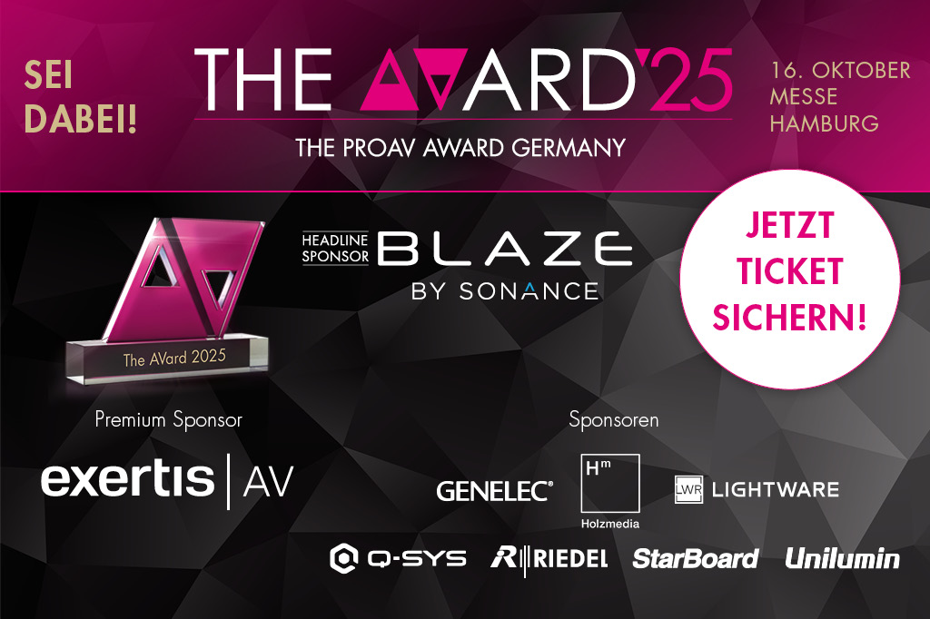 Am 16. Oktober öffnen in der Hamburg Messe die Tore für das ProAV-Event des Jahres! Sichere dir dein Ticket und erlebe die Ehrung der besten Projekte, Produkte und Persönlichkeiten der Branche bei The Avard 25!
