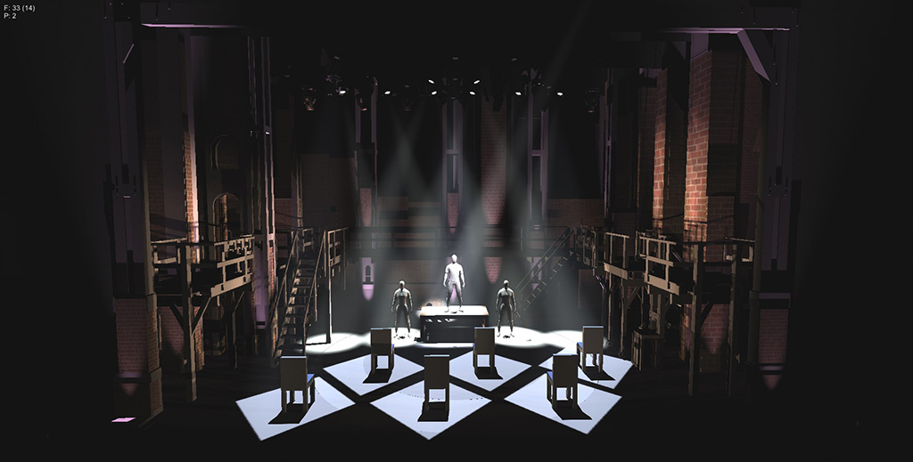 Als anspruchsvolle Aufgabe und dazu perfekte Übung sah Arch den Import des 3D-Modells des Hamilton-Bühnenbilds aus dem Pre-Visual der ersten Tournee-Produktion, inklusive des Licht-Setups. Mit Augment3d – als virtuelle Spielstätte – programmierte er als ersten Schritt einfache geometrische Figuren, richtete konventionelle Scheinwerfer aus, passte Moving Light Presets an und fügte der Kulisse und Drehbühnen virtuelle Schauspieler hinzu. „Ich dachte mir: Das ist eine richtig interessante Lernerfahrung“, sagt Arch und er folgerte daraus: „Wenn das für mich lehrreich ist, dann dürfte es wohl auch für andere eine spannende Erfahrung sein.“ Es war die Initialzündung des „Hamilton Programmier-Projekts“.