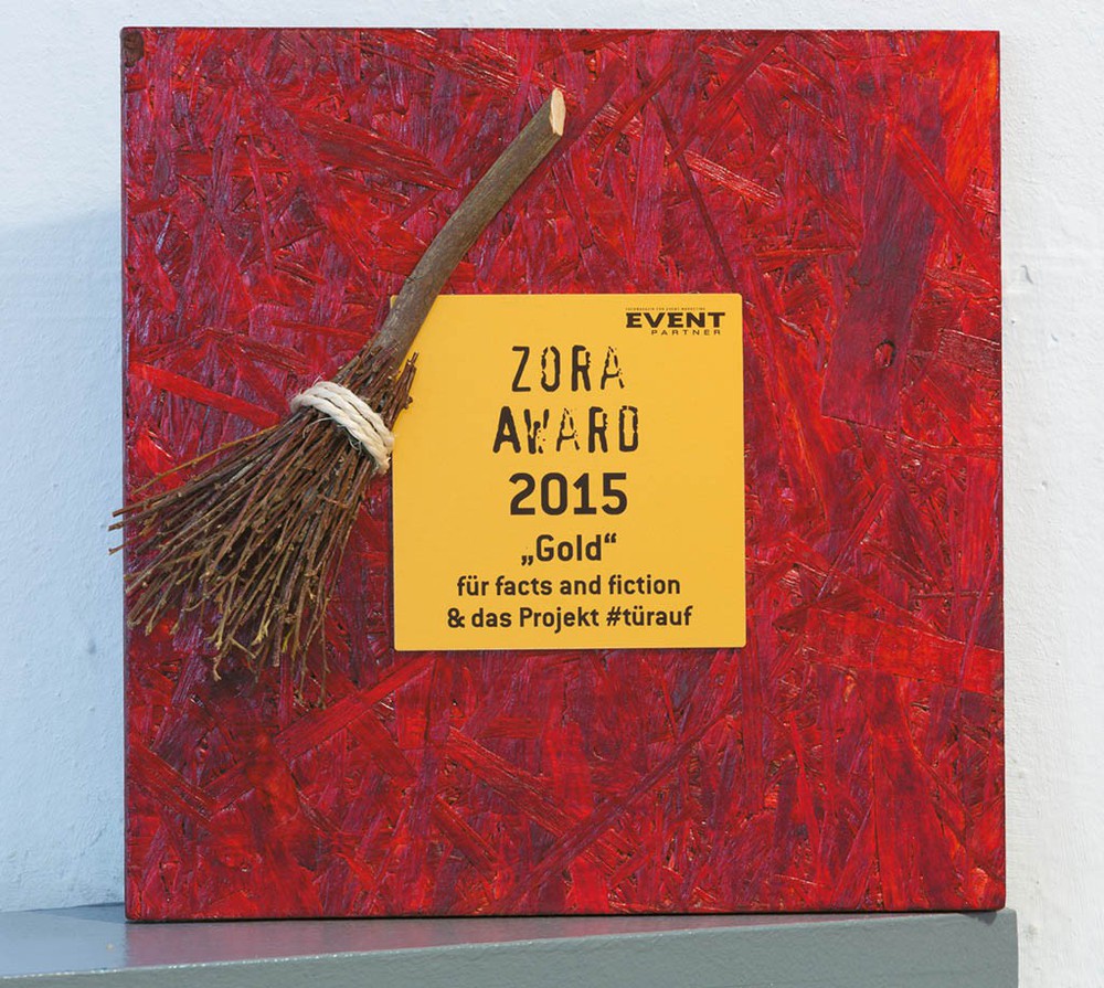 Lange hatte die Event-Zora damit gedroht und es angekündigt – Ende November 2015 machte sie dann Nägel mit Köpfen und kam auf die Event Partner Redaktion zu, ob diese denn nicht einen Preis vergeben wollen würde. Den Zora Award. In Gold. Für Facts and Fiction und deren Flüchtlingsprojekt #türauf. „Wir waren sofort Feuer und Flamme! Schließlich ist dies der allererste Award überhaupt, mit dem sich Event Partner in den Dschungel der Preise innerhalb der Eventbranche begibt. Und dazu noch solch eine subjektive Auszeichnung!“, erzählt die Event Partner Redaktionsleitung Martina Gawenda begeistert.