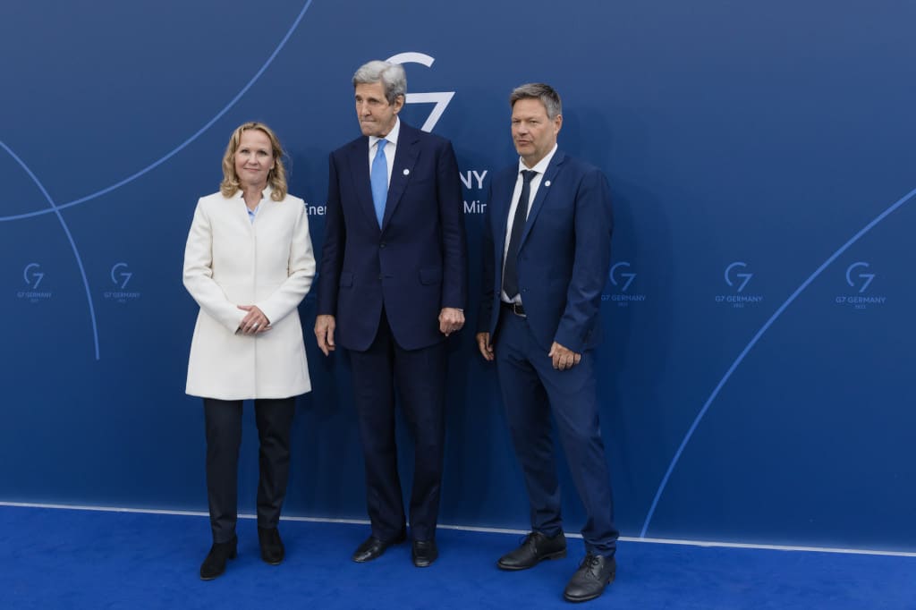 Treffen der G7-Minister:innen für Klima, Energie und Umwelt in Berlin auf dem EUREF-Campus: Steffi Lemke, John Kerry und Robert Habeck (v.l.n.r.) (Bild: Stephan Bögel)