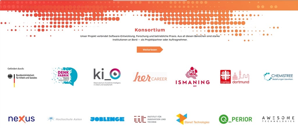 Zum interdisziplinären Konsortium des Forschungsprojekt KI-Cockpit gehören unter anderem Awesome Technolgies, Chemistree, Caritas Dortmund, herCareer und die Hochschule Aachen – und der Geldgeber, das Bundesministerium für Arbeit und Soziales (Bild: Projekt KI-Cockpit)(Bild: Projekt KI-Cockpit)