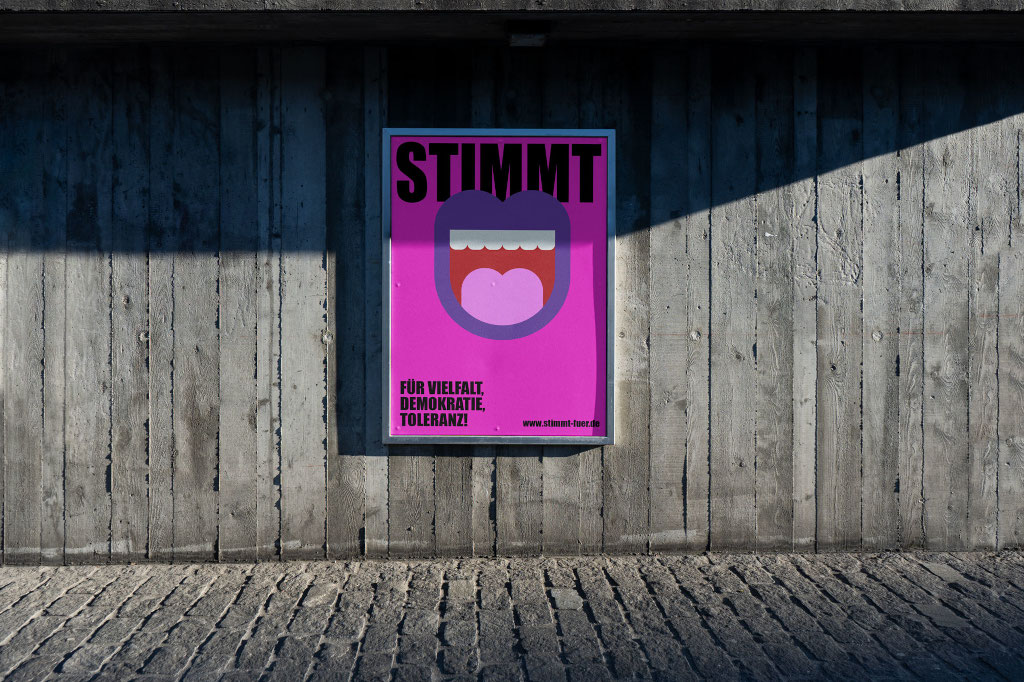 Im Mittelpunkt der „STIMMT”-Kampagne stehe die gleichnamige Website. Interessierte können sich dort die Motive downloaden und über den Label-Generator mit eigenem Namen und Farben individuell selbst kreieren. Danach teilen könne man das „STIMMT”-Keymotiv auf der Plattform seiner Wahl posten – zum Beispiel als Social-Media-Post oder als DIN-A1-Plakat für Demos oder das Büro. Möglich sei auch eine AR-Litfaßsäule, die man via Smartphone digital auf belebte Plätze in der Stadt oder in der Firma stellen, fotografieren und dann mit dem Hashtag #stimmtfuer teilen könne.