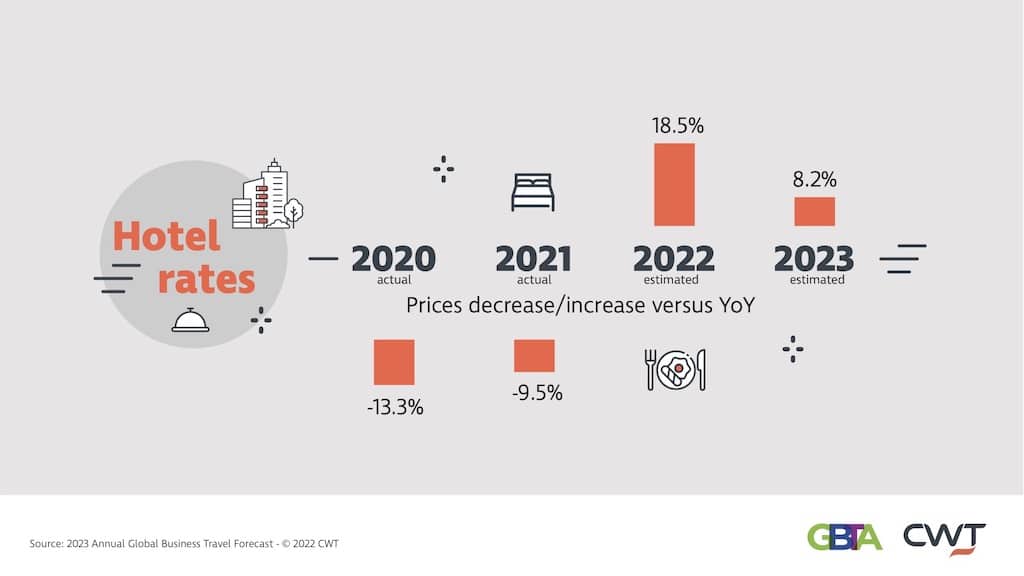 Die Hotelpreise sind in einigen Teilen der Welt stark gestiegen, darunter um 22% in Nordamerika und voraussichtlich 31,8% in Europa, dem Nahen Osten und Afrika.