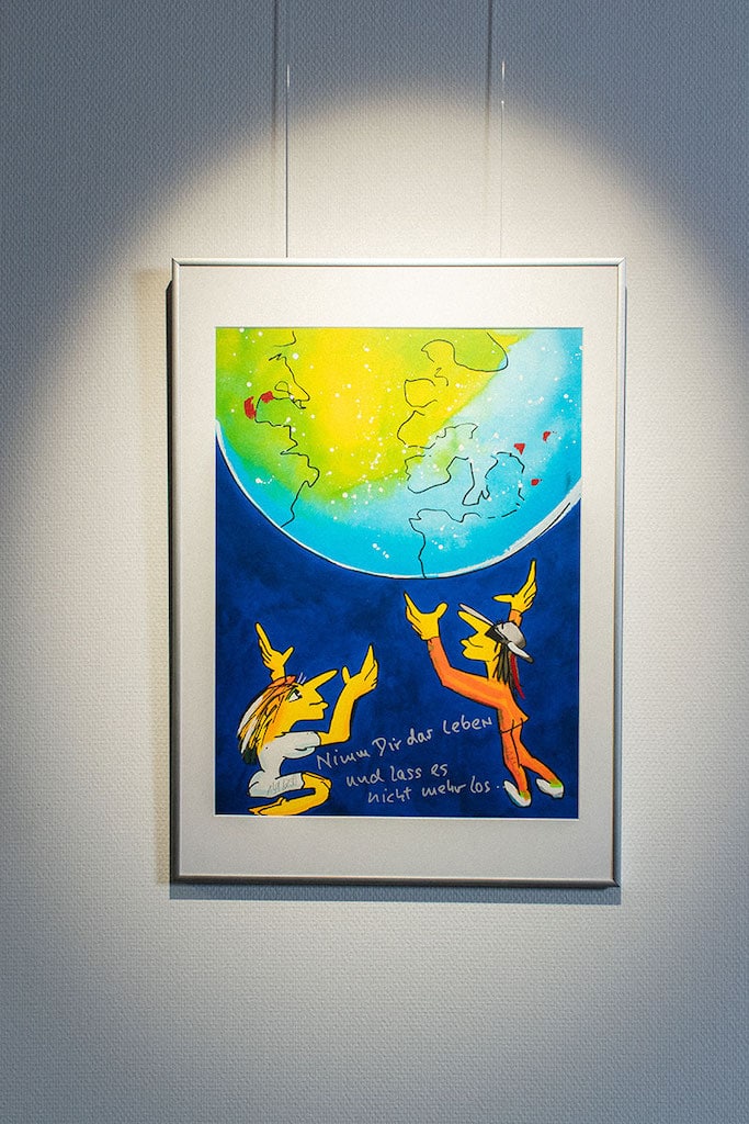 Günter Jäckle übergibt Udo-Lindenberg-Original nebst Widmung zur Eröffnung
