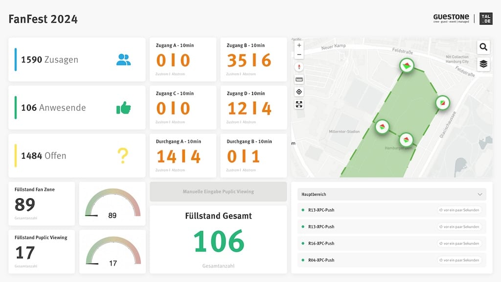 Dashboard FanFest Hamburg zur Fußball Europameisterschaft 2024 (Bild: Guest-One)