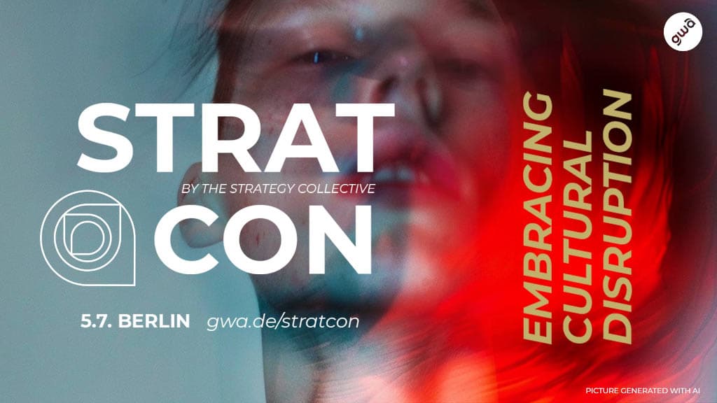 Der Branchenverband GWA schafft mit der Strat Con ein Konferenzangebot für Strateg:innen und Personen aus Agenturen, die sich für strategisch prägende und kulturell relevante Themen interessieren. Dabei sei „Embracing Cultural Disruption” das Motto der ersten ganztägigen Veranstaltung, die am 5. Juli 2024 im Holzmarkt Berlin stattfinde.