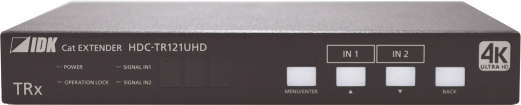 Die neuen IDK-Geräte HDC-TR121UHD, HDC-TH/RH221UHD und HDC-TH/RH421UHD sind 3-in-1-Geräte, da sie neben dem HDBaseT-Extender auch noch die Möglichkeit einer 2:1-Umschaltung (zwischen HDBaseT und HDMI Eingang) besitzen. Zusätzlich ist noch eine 1-auf-1+1, 1-auf-2+1 oder 1-auf-4+1-Signalverteilung mit bis zu 4K60-Videoübertragung ohne Kompression und Latenzzeit möglich.