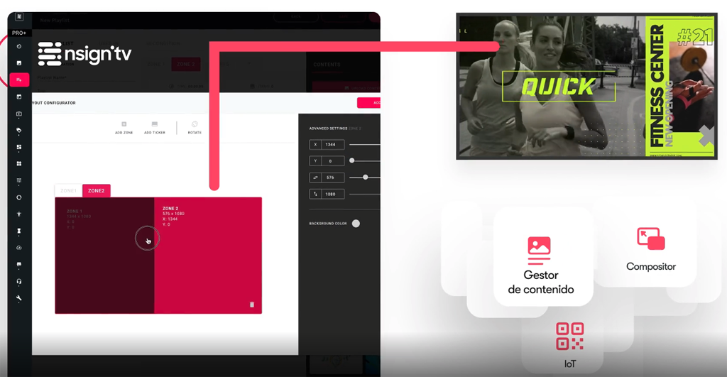 nsign.tv ist laut eigener Aussage eine Kommunikationsplattform (CPaaS), die es Marken ermöglicht, ihre physischen Räume zu nutzen, um Kommunikationskanäle zu schaffen und mit ihrem Publikum auf personalisierte und segmentierte Weise in Kontakt zu treten. Diese Software-Plattform soll durch Big Data, IoT und KI-Systeme in jede Digitalisierungsinitiative integriert werden können und es Integratoren ermöglichen, große audiovisuelle Projekte zu implementieren und sie von einer zentralen Plattform aus zu verwalten.