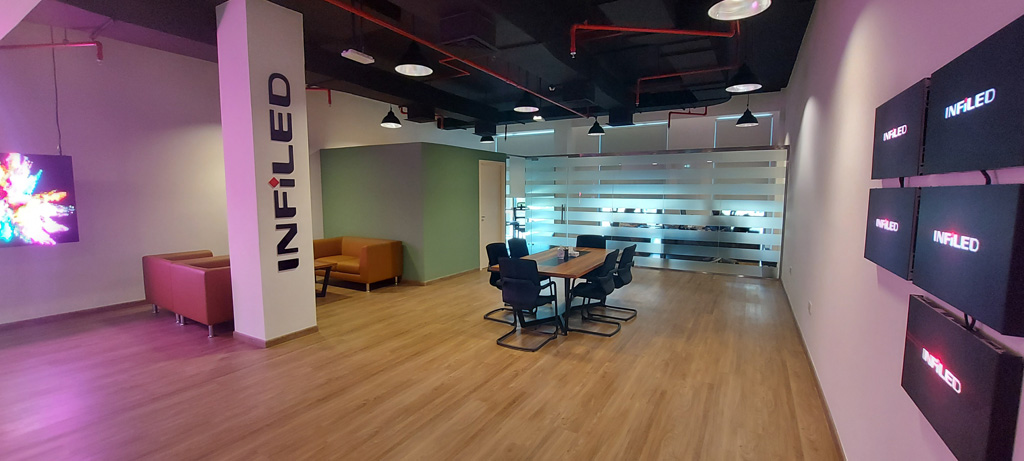 Das Unternehmen unterhält und investiert weiterhin in seinen 500 m² großen EMEA Showroom in Barcelona, der im Februar 2021 eröffnet wurde und in dem Kunden die neue LED-Technologien und Produkte von Infiled aus erster Hand sehen können.