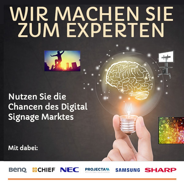 Mit vor Ort sind Vertreter und Produktspezialisten von BenQ, CHIEF, NEC, Projecta, Samsung und Sharp. Das Digital-Signage-Training richtet sich an Fachhandelspartner mit fortgeschrittenem Wissen und vertrieblichem Hintergrund.