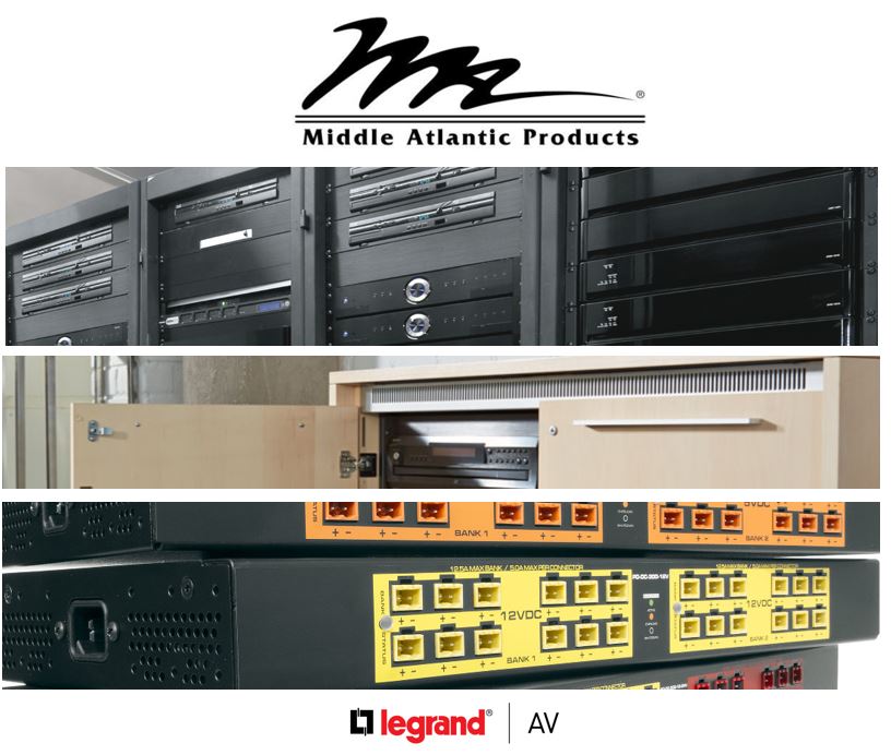 Middle Atlantic Products ist Marktführer im Bereich der ProAV-Racks. Als Teil der AV-Abteilung von Legrand stellt Middle Atlantic seit 1979 Racks, Geräteschränke und technische Möbel für die Montage integrierter AV-Systeme her. Middle Atlantic bietet vom 19“-Rack im Stahlrahmen bis hin zur Integration in ein Möbelstück eine Vielzahl an Lösungen, die auch unter schwierigen Installationsbedingungen einsetzbar sind. Ergänzt werden die Racks um ein breites Sortiment an Zubehör, so dass für jede Anwendung die ideale Lösung gefunden werden kann. Bei der Entwicklung der Produkte stehen neben einem ästhetischen Design besonders die Anforderun- gen der Integratoren im Vordergrund.