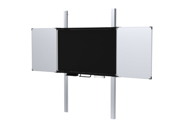 Die SolutionBoxes Projektion beinhalten einen interaktiven Fingertouch-Projektor sowie eine Projektionstafel mit hochwertiger, kratzfester Stahlemaille-Hybridoberfläche (in vier verschiedenen Größen erhältlich). Die High-End-Lösungen sind die SolutionBoxes Display mit einem 75 oder 86 Zoll interaktiven Touchdisplay. Für alle Varianten und Größen sind optional Flügeltafeln verfügbar. Der flexible Aufbau der manuell höhenverstellbaren Pylonen-Komplettsysteme erlaubt die Einbindung von Projektoren oder Displays aller gängigen Hersteller.