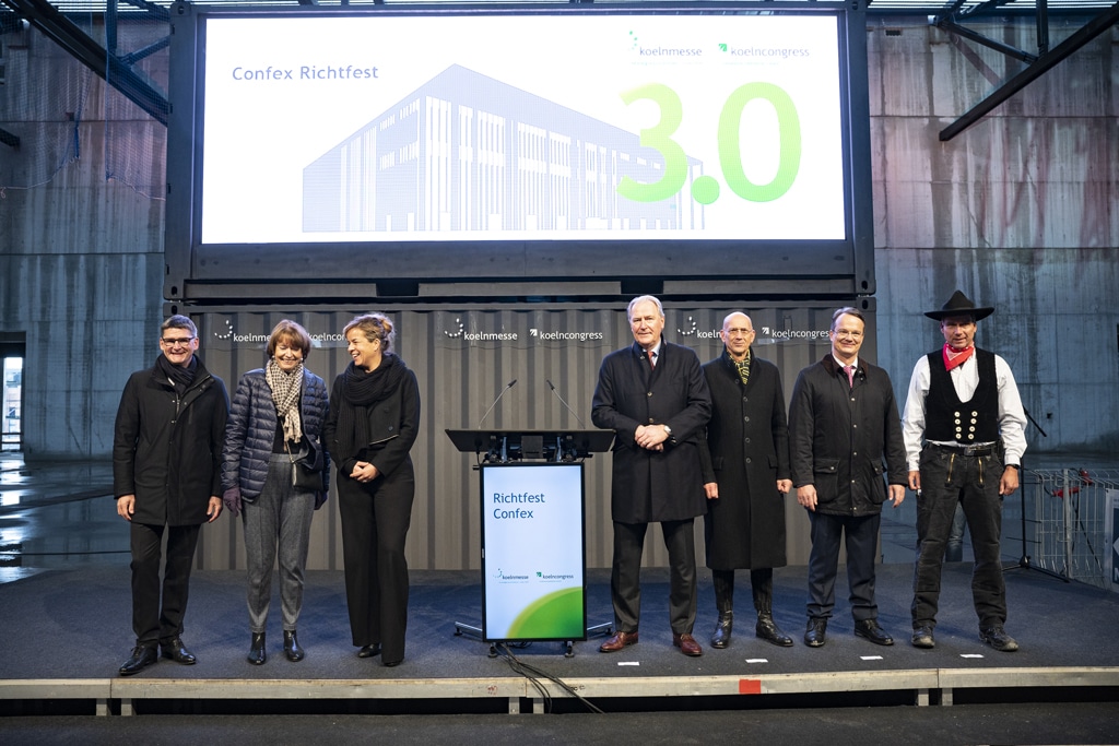 Am 21. November 2022 feierten die stellvertretende Ministerpräsidentin des Landes Nordrhein-Westfalen Mona Neubaur, Kölns Oberbürgermeisterin Henriette Reker und Koelnmesse Geschäftsführer Gerald Böse mit Politik, Wirtschaft und vielen am Bau Beteiligten Richtfest für das neue Confex.