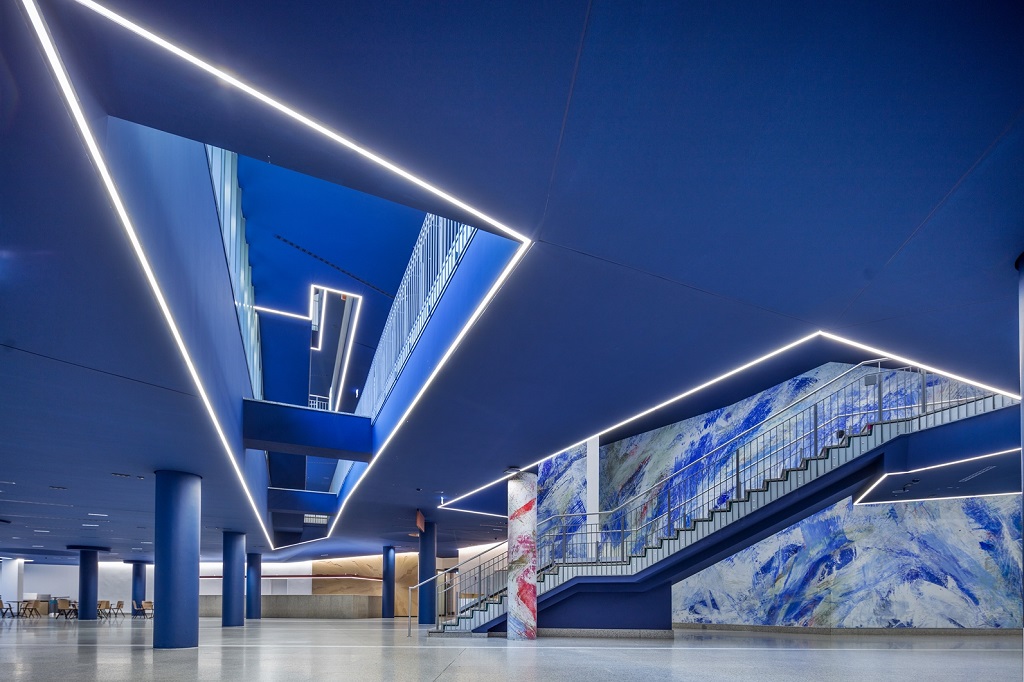 Die Decken wurden in einem dunklen Blauton gestrichen und die Raumkanten betont und aufgehellt. Ein neues Besucherleitsystem, eine große LED-Videowand am Haupteingang, sowie der Einbau von Holzelementen an den Bars, den Treppenaufgängen und dem Toilettenbereich unterstreichen das nun modernere Ambiente.