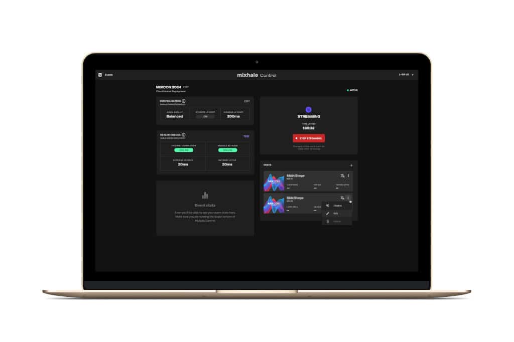Innerhalb der L-ISA-3.2-Software ermöglicht Mixhalo Control die Konfiguration von Events und Veranstaltungsorten mit der Verwaltung von Mixhalo Live, Moments und Translate. (Bild: L-Acoustics)