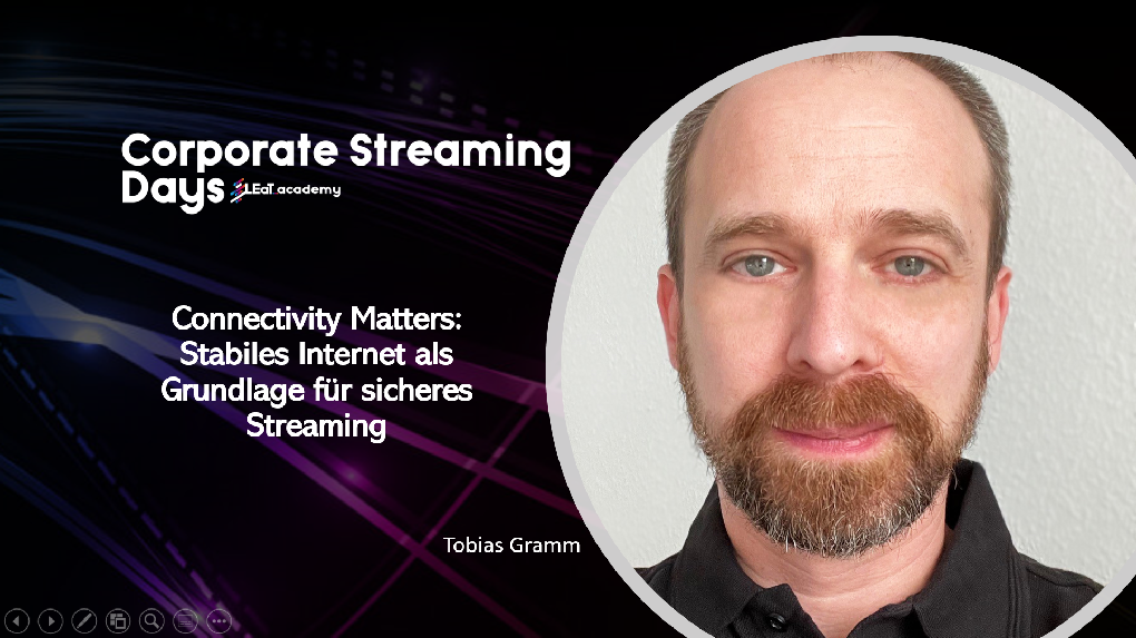 Diesen und weiteren Fragen wird Tobias Gramm, Geschäftsführer der Connectivity- und Streamingspezialisten TIVIDOO GmbH, in seinem Webinar “Connectivity Matters: Stabiles Internet als Grundlage für sicheres Streaming” auf den Corporate Streaming Days nachgehen und zeigt dabei aktuelle Technologien, Netze und Workflows.
