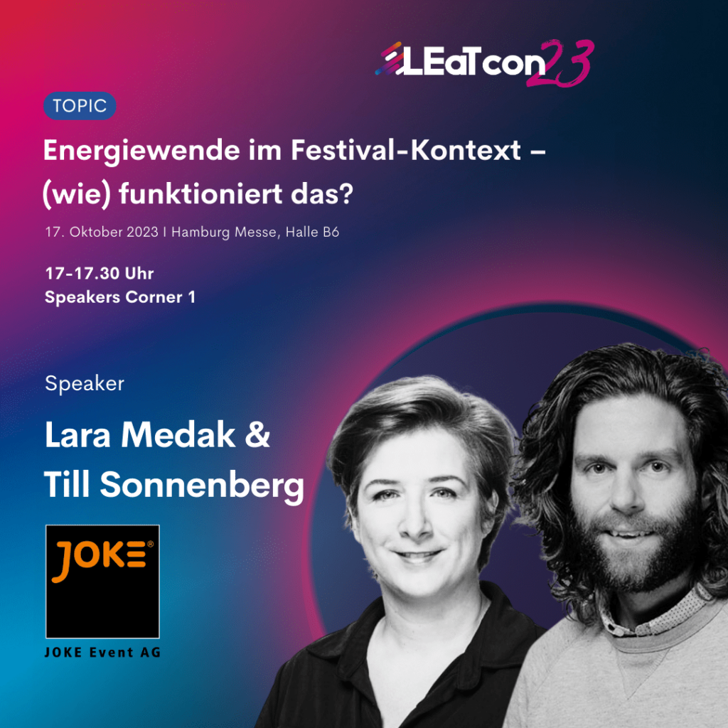 Lara Medak und Till Sonnenberg von der JOKE Event AG nehmen dich mit auf eine Reise in die Energiewende im Festival-Kontext. Am Beispiel des Pionierprojektes „EWE Festival Kraftwerk“ zeigen sie dir, welche klimafreundlichen Lösungen für Energieversorgung es im Festival-Bereich gibt und wo die aktuellen Herausforderungen bei der Umsetzung liegen. 🎤🍃