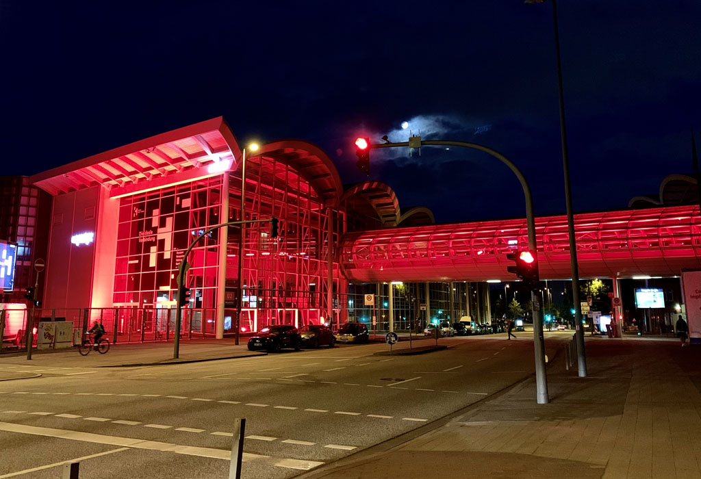 Im Rahmen der Night of Light Vol. 2 erstrahlten deutschlandweit über 1.500 Event-Spielstätten und Wahrzeichen in rotem Licht. Auch der Skywalk sowie das B-Gelände der Hamburg Messe wurden als Gemeinschaftsprojekt der LEaT con mit mehreren Partnern in rotes Licht getaucht:
