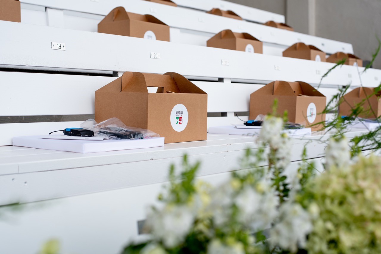 Dabei versorgte der Caterer nicht nur an den zehn Auf- und Abbautagen coronakonform die gesamte Crew mit frischen, regionalen Buffets und süßen Snacks, sondern platzierte am Tag der Veranstaltung auch 500 Lunchbags auf der Tribüne mit kleinen, kulinarischen Geschmackshappen. Vor und nach dem offiziellen Bühnenprogramm wurden bunte Canapé-Variationen gereicht.