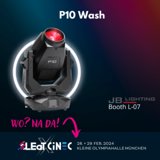 Am 28. und 29. Februar verwandelt sich die Kleine Olympiahalle in München in DAS HighLIGHT für alle Lichtspezialisten. Die LEaT X CiNEC präsentiert euch von innovativen Movinglights bis hin zu präzisen Studioleuchten von namhaften Marken alles, was das Lichtler-Herz höher schlagen lässt – egal ob Event-, Entertainment- oder Studiobeleuchtung. Ein funkelndes Highlight: Erlebe den gerade erst gelaunchten P10 Wash von JB Lighting!