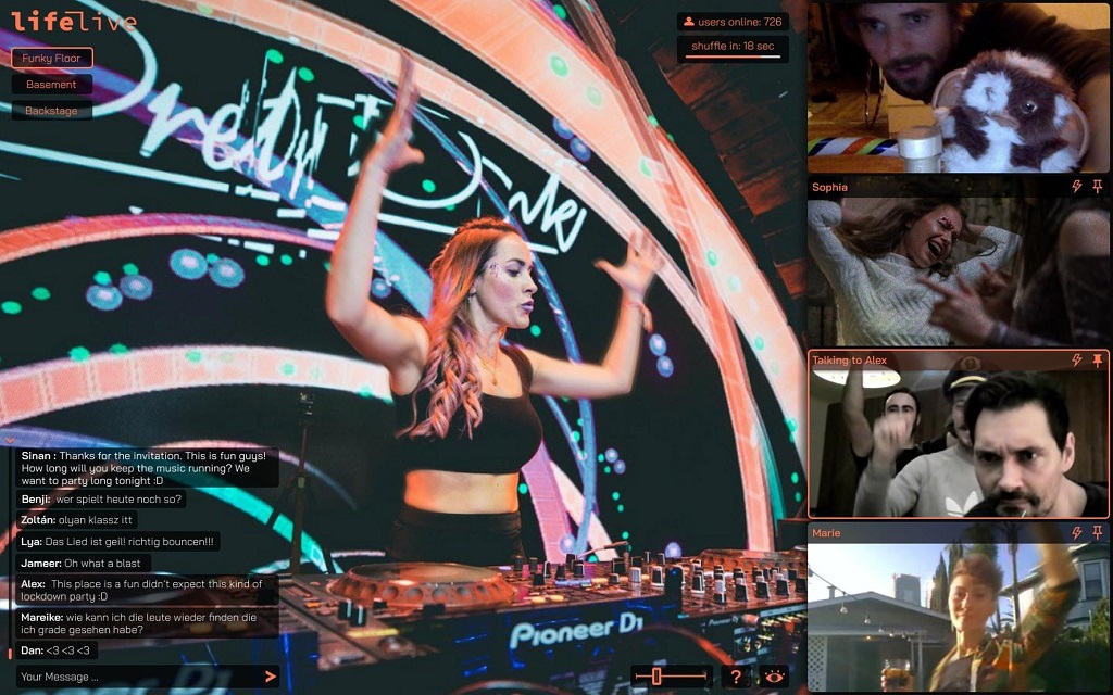 Mit der neuen Streamingplattform LifeLive will ein Berliner Start-up die Veranstaltungsbranche unterstützen. Die interaktive Plattform erlaubt es Usern an einem Live-Event teilzunehmen sowie mit anderen Usern individuell über einen Live-Videochat zu kommunizieren. Dabei werden die Nutzer:innen in regelmäßigen Abständen immer wieder neu zusammengewürfelt und können zwischen verschiedenen Floors wechseln.