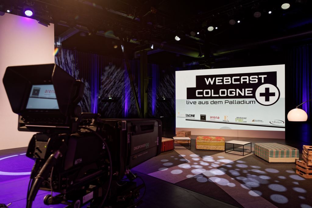 Im Kölner Palladium kann ein komplett eingerichtetes Webcast-Studio von Light Event genutzt werden, um Veranstaltungen live ins Internet zu streamen oder Inhalte für Social-Media-Channels zu produzieren.