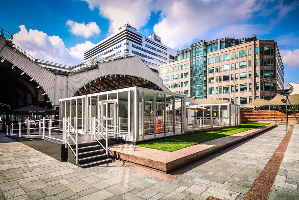 Auf der Euro Shop 2017 wird der Losberger Cyclone in Halle 4, Stand 4/D23 als eigener Messestand präsentiert. Vor allem durch die Kombinationsmöglichkeit mehrerer Elemente entstehen stets neue Gebäudeformen. (Bild: Losberger)
