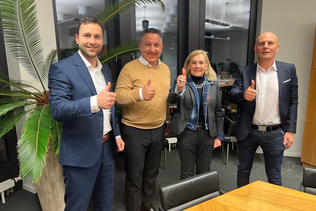 V.l.n.r.: Peter Junker (Associate Partner Drees & Sommer), Oliver Mack (Geschäftsführer macom), Gabriele Walker-Rudolf (Partnerin Drees & Sommer) und Björn Jensen (Gründer macom) (Bild: Drees & Sommer SE)