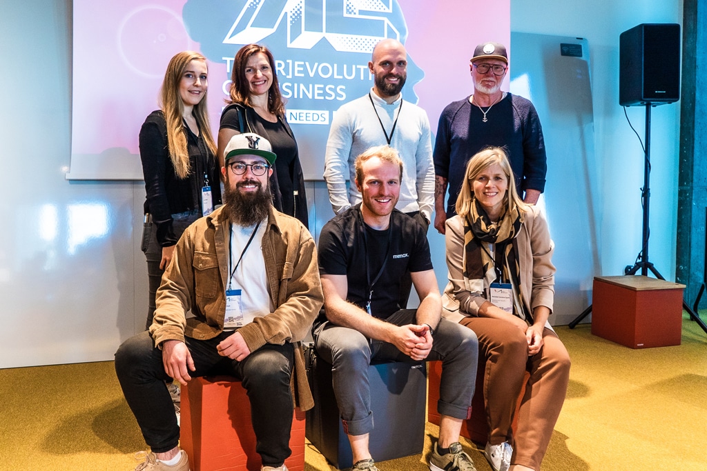 Hintere Reihe (v.l.n.r.): Linn Ehrlich (#SocialSix), Tanja Schramm (Meet Germany), Hannes Schwarm (Mr Wolf | Vok Dams), Tom Inden-Lohmar (The Soul Managers); Vordere Reihe (v.l.n.r.): Nicolai Scholl (Berlins Neue Kinder), Hannes Rodewald (#SocialSix), Michelle Caroline Speth (Akademie der Zukunft) (Bild: Meet Germany, Mike Kästner - Digital Artist)