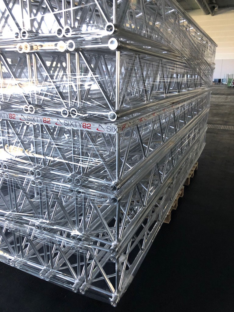 Im Frühjahr 2022 investierte die Messe in eine große Menge Traversen des niederländischen Herstellers Sixty82, bezogen von der Firma cast aus Hagen. 615 lfm der 4-Punkt Traverse, 80 lfm der kompakteren M29S 4-Punkt-Traverse sowie eine begrenzte Menge an 3-Punkt-Traverse, Modell M29T, stehen seit dem Frühjahr zur Verfügung.
