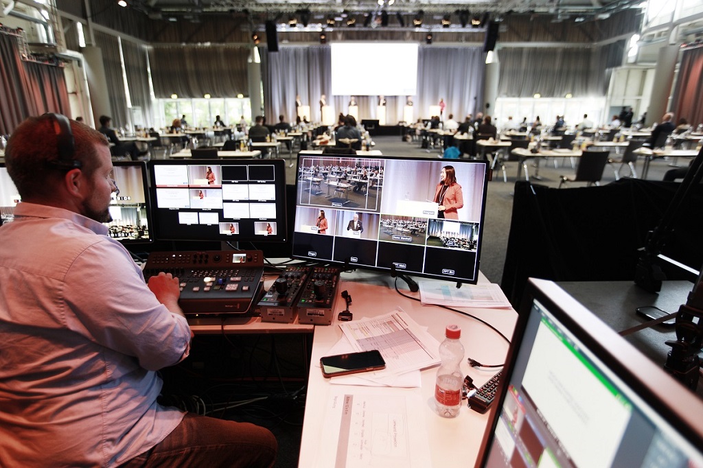 „Momentan ist vielen Veranstaltern noch nicht klar, wie hybride Formate erfolgreich eingesetzt werden können. Wer sich unsicher ist, kann sich gerne jederzeit an uns wenden. Durch die enge Kooperation mit professionellen und ortskundigen Dienstleistern, gepaart mit eigenen Erfahrungen, können wir viele Lösungen aufzeigen und individuelle Konzepte entwickeln“, unterstreicht Holger Klanfer. So wurde die Gartenhalle am 15. Juli für den Energiekongress des Netzwerks fokus.energie e.V. und der TechnologieRegion Karlsruhe zum ersten Mal zum Streaming-Studio: Unter Einhaltung eines abgestimmten Sicherheits- und Hygienekonzepts verfolgten vor Ort rund 60 Teilnehmer die Vorträge und Diskussionen zu den Themen Energie und Nachhaltigkeit, während 330 Zuschauer die Live-Übertragung nutzten. Drei Tage später wurde der Außerordentliche Landesparteitag der FDP Baden-Württemberg aus der dmarena der Messe Karlsruhe live gestreamt. Als langjährige Stammkunden lassen auch der Arbeitskreis Grundwasserschutz e.V. und die Überwachungsgemeinschaft “Bauen für den Umweltschutz” e.V. ihr Karlsruher Deponie- und Altlastenseminar am 14. und 15. Oktober mit einem hybriden Konferenz-Konzept von der Messe Karlsruhe umsetzen. Für die 300 Präsenz-Teilnehmer und die 17 Firmenaussteller wurde ein Hygienekonzept mit Abstandsregeln und einer Maskenpflicht, sobald man seinen Platz verlässt, erarbeitet. Online-Teilnehmer erhalten Zugriff auf die Videomitschnitte der Vorträge – auch 30 Tage lang On-Demand – und können sich in Chats, Videokonferenzen und virtuellen Räumen der Aussteller vernetzen. Rein virtuell stattfinden, aber geleitet aus der Gartenhalle in Karlsruhe, wird die 50. Jahrestagung der Gesellschaft für Informatik, die vom 29. September bis 1. Oktober zur Teilnahme einlädt.